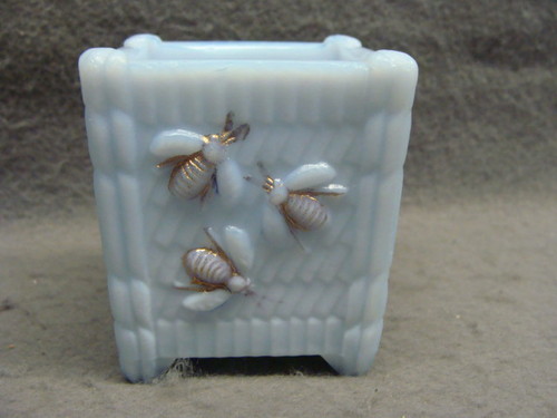 Antique Blue Milk Glass Sowerby Posey Holder With Bees