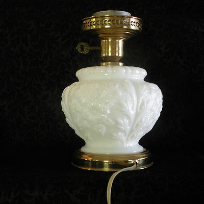 VINTAGE FENTON WHITE MILK GLASS POPPY GONE WITH THE WIND 3 WAY LAMP GWTW