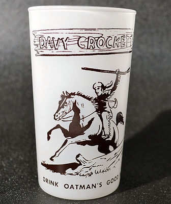 Title (ebay affiliate link): K794. VINTAGE DAVY CROCKETT WHITE "OATMAN'S GOOD MILK" FROSTED GLASS (1950's)