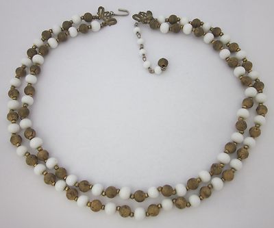 Vintage Milk Glass Bead/Goldtone Metal Bead Necklace