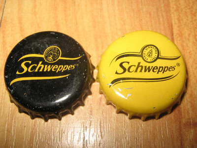 Title (ebay affiliate link): BOTTLE 2 caps Yellow AND Black Schweppes SODA BULGARIA used bottle 2 caps set