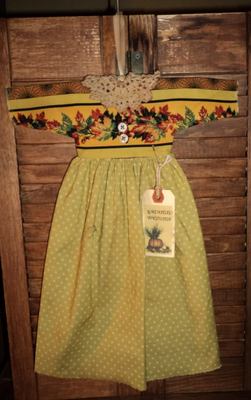 GRUNGY PRIMITIVE WALL~CUPBOARD~ DOLL DRESS AUTUMN LEAVES FALL~FOLK ART~DECOR