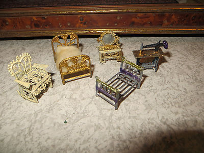 Title (ebay affiliate link): DOLLHOUSE MINIATURE ANTIQUE VINTAGE TINY SOFT METAL PAINTED MISC. FURNITURE