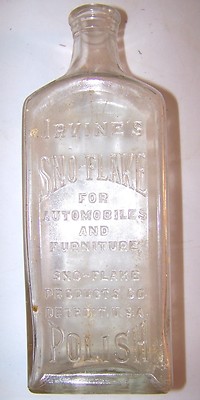 ANTIQUE IRVINE'S SNO FLAKE POLISH BOTTLE FOR AUTOMOBILESFURNITURE DETROIT USA!
