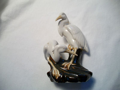Vintage Glazed Ceramic Herons Birds Statue Statuette