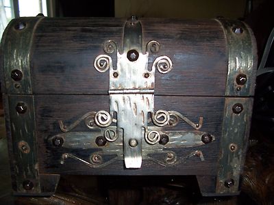 Title (ebay affiliate link): Vtg Wood Pirate Gothic Renaissance Treasure Chest Jewelry Box Trinket Box