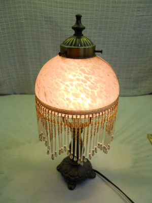antique vintage table lamp cast metal base rose glass shade 14" tall old light