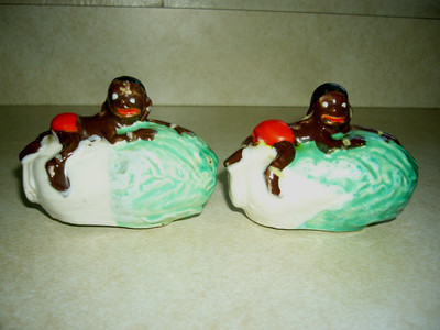 Native on lettuce porcelain antique salt and pepper shakers