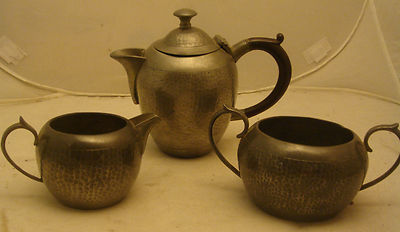 ANTIQUE DENTON ENGLISH LEADLESS PEWTER TEA/COFFEE SET