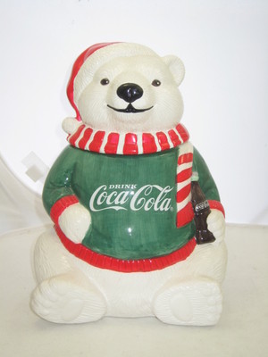 Title (ebay affiliate link): Limited Edition Coca Cola Coke Polar Bear Christmas Ceramic Cookie Jar (1995)