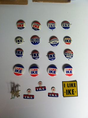 Title (ebay affiliate link): Nice Lot of Vintage Dwight D Eisenhower "I Like Ike" Campaign Buttons and More!