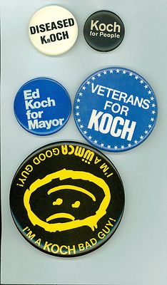 Title (ebay affiliate link): 5 New York City Mayor Ed Koch Pro and Con Political Campaign Pinback Buttons