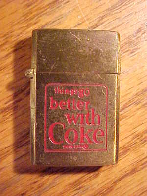 Title (ebay affiliate link): Vintage Tobacco Cigarette Lighter Things go better with Coke Coca-cola By Rogers
