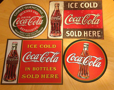 Title (ebay affiliate link): New Coca Cola tin signs Lot of 4 Coke Vintage Reproduction Tin Signs decor retro