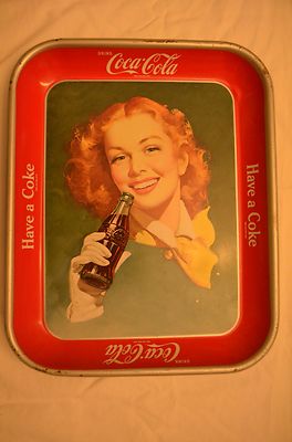 VINTAGE 1950 COCA COLA TRAY RED HAIRED GIRL/YELLOW SCARF