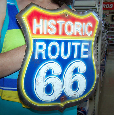 Title (ebay affiliate link): Large Route 66 Neon Vintage Look Metal Sign Coca Cola Gas Service Station Pepsi