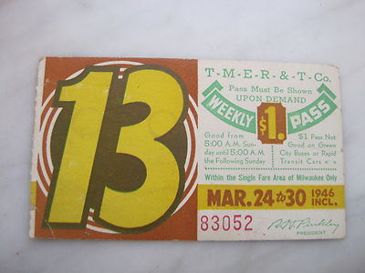 Title (ebay affiliate link): 1946 MILWAUKEE ELECTRIC RWY & TRANSPORT CO MARCH 24-30 WEEKLY PASS