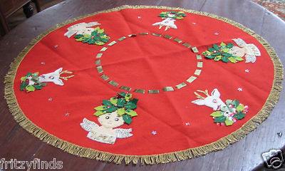 Title (ebay affiliate link): Vintage Christmas Tree Skirt - Handmade Felt Applique Rudolf Noel Angels 36"
