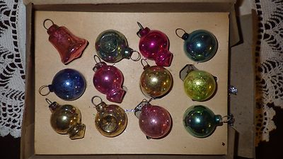 10 Vintage Shiny Brite Xmas Ornaments Box Set Ufo's, Indents, Bells, Rounds