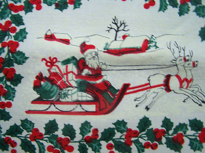 Adorable Vintage Christmas Tablecloth Santas Carolers Scenes More