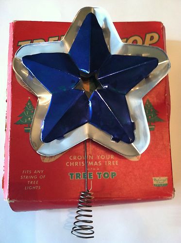 Title (ebay affiliate link): Vintage Christmas Blue Aluminum Star Tree Topper Natl. Tinsel Co. IOB