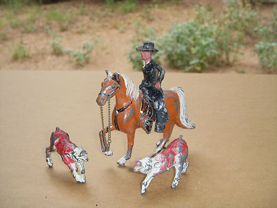 Title (ebay affiliate link): Vintage Metal Horse Cowboy Rider & Lead Calves Roped Steers Manoil?