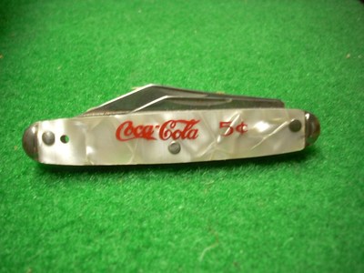 VINTAGE ANTIQUE COCA COLA 5 cent POCKET KNIFE MOTHER of PEARL 2 BLADES !!!