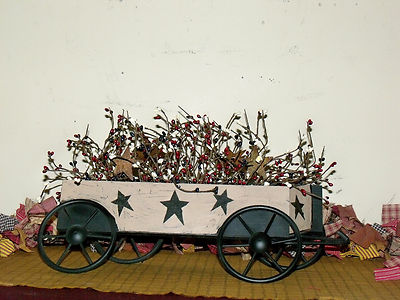 Title (ebay affiliate link): Primitive Country Crackle...Farm House...Old Steel Wheeled Wagon w/ Pip Berries