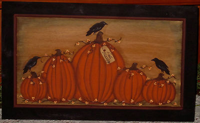 Title (ebay affiliate link): *~*PRIMITIVE*~* HP 5 FOLK ART PUMPKINS WITH BITTERSWEET *~* CROW *~* DOOR PANEL