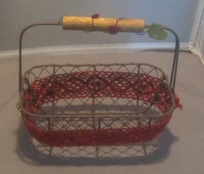 Title (ebay affiliate link): Small Primitive Rusty Chicken Wire Egg Gathering Basket Wood Handle Metal Decor