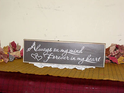 Title (ebay affiliate link): Primitive Country Shelf Sitter Sign...."Always On My Mind...Forever In My Heart"