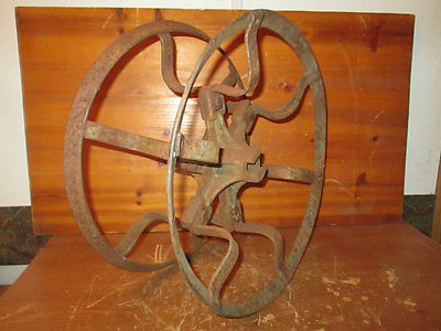 LARGE ANTIQUE HOSE WIRE SPOOL REEL 16" DIAMETER SHOP STATION RUSTIC DECOR