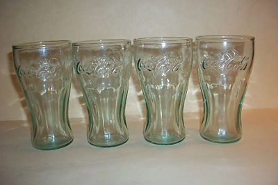 Title (ebay affiliate link): SET OF 4 COCA COLA GREEN BOTTLE SHAPED SMALL GLASSES