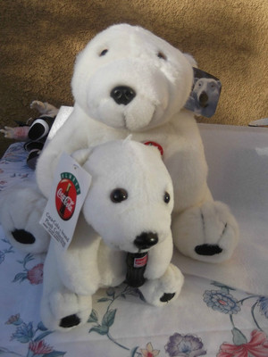 Title (ebay affiliate link): Coke-cola Official Polar Bear white stuffed animal and smaller Coke bear extra