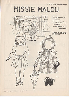 Title (ebay affiliate link): *Missie Malou* Paper Dolls - Page from Children's Friend Magazine - 04/1954