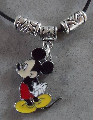 Title (ebay affiliate link): COLLECTABLE MICKEY MOUSE CHARM LEATHER NECKLACE FREE ORGANZA GIFT BAG