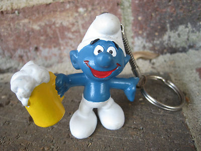 Vintage 1975 Smurf with Mug of Beer Keychain