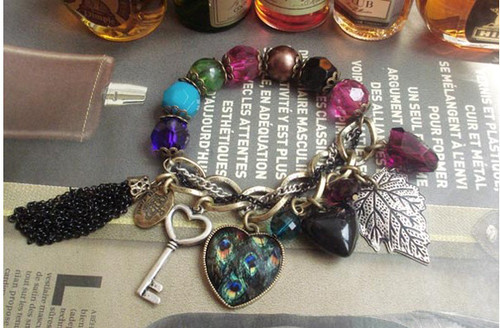 Title (ebay affiliate link): Vintage Bronze Heart Multi-Pendants Rhinestone Key Chain Charm Bracelet