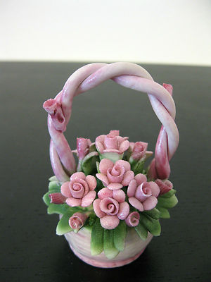 Title (ebay affiliate link): Vintage Capodimonte Porcelain Mini Pink Rose Basket CROWN "N" Mark