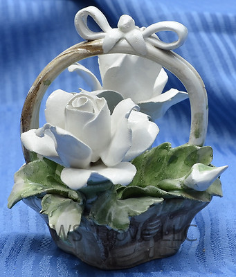 Title (ebay affiliate link): Capodimonte Handmade Porcelain Mini Basket of White Roses w/ Bow on Handle