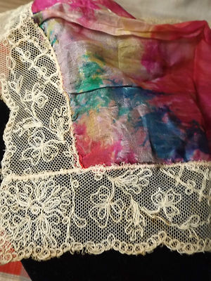 vintage 1920s BRIDAL WATERED~SILK LACE HANKIE antique French doll/cutter craft