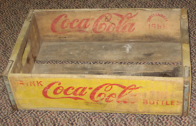 Title (ebay affiliate link): Vintage COCA-COLA Yellow Coke Bottle Carrier Crate Wood Box 1966 Chattanooga