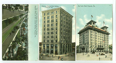 3 Vintage, Pensacola FL, "San Carlos Hotel, American National Bank Building &...