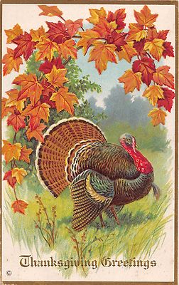 Title (ebay affiliate link): 1913 Thanksgiving Postcard of Pretty Turkey With Colored Autumn Leaves-Ser. 205C