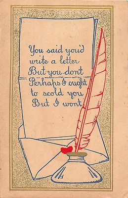Title (ebay affiliate link): 1912 Motto Postcard With Ink Well, Quill Pen & Letter-Everett Exclusive Studios