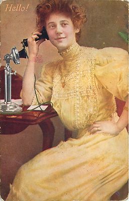 Title (ebay affiliate link): Pretty Lady on Candlestick Telephone~Desk~Yellow Lace High Neck Gown~Redhead '07