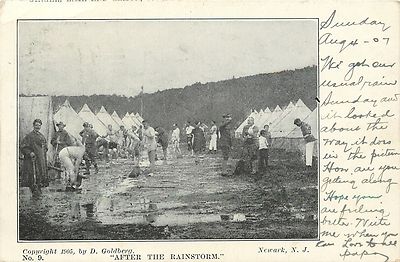 Title (ebay affiliate link): Newark New Jersey~National Guard Camp~"After the Rainstorm"~Men Strip Down~1907