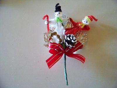 Title (ebay affiliate link): VTG CHRISTMAS SPUN COTTON FIGURES CORSAGE / CHRISTMAS SPUN COTTON