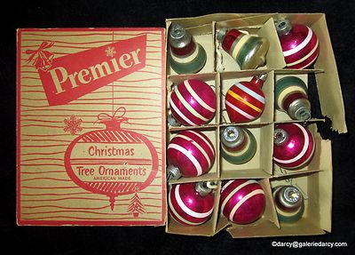 Title (ebay affiliate link): 1940s PREMIER GLASS Christmas Tree Ornaments,Set of 12 w/Original Box.