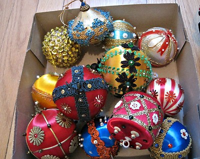 Title (ebay affiliate link): VINTAGE CHRISTMAS SATIN BALL HANDMADE ORNAMENTS BEADED SEQUIN LOT 12